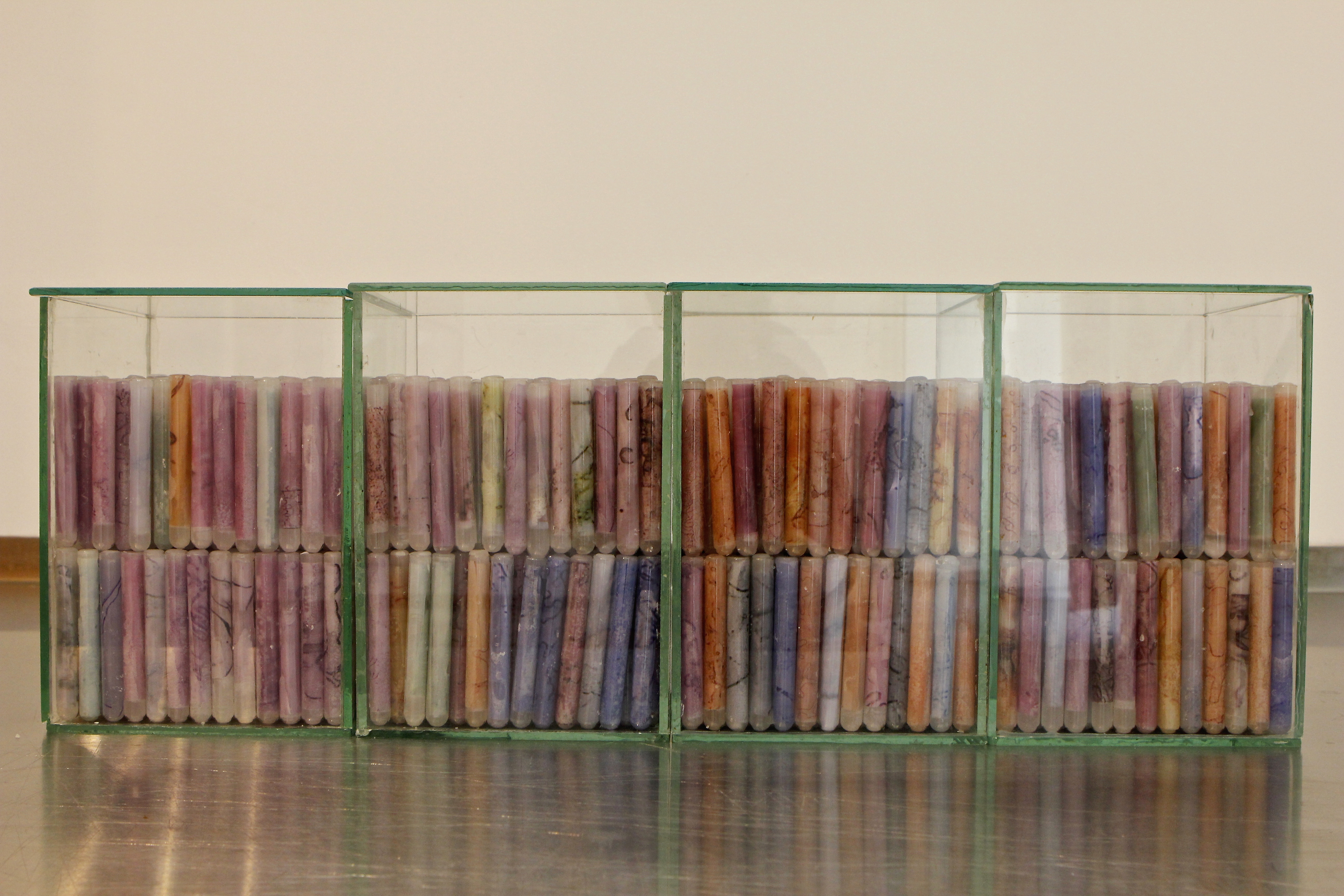 Μια εγκατάσταση στο χώρο του εργαστηρίου στο ΜΕΤ, αποτελούμενη από δώδεκα παραπετάσματα φωτογραφιών δακρύων στο μικροσκόπιο, πλάκες από αλάτι που έχουν μέσα τους κρυμμένα δείγματα δακρύων, αλάτι στο δάπεδο και γυάλινα κουτιά που περιέχουν δοκιμαστικούς σωλήνες με φωτογραφίες δακρύων. Το δικό μου εναλλακτικό αρχείο δίνει έμφαση στο θραύσμα. Είναι ένα μοντάζ ετερόκλητων συναισθημάτων διαφορετικών ανθρώπων, διαφορετικών ταυτοτήτων, σε διαφορετικές χρονικές στιγμές. Μια προσπάθεια σύνδεσης συναισθημάτων, σε μια εποχή που απομακρύνεται από το συναίσθημα και το παγώνει. Έκανα χρήση της φωτογραφίας και πάνω σε κάθε μια έγραψα με μολύβι τον αριθμό του δείγματος δακρύου που λάμβανα. Κέρωνα κάθε φωτογραφία δίνοντας σάρκα στο άυλο εξατμισμένο δάκρυ. Τεκμήρια μιας συγκίνησης που έχει πια χαθεί.
